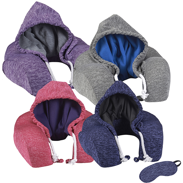כרית נסיעות לצוואר מרופדת עם קפוצ'ון וכיסוי לעינים