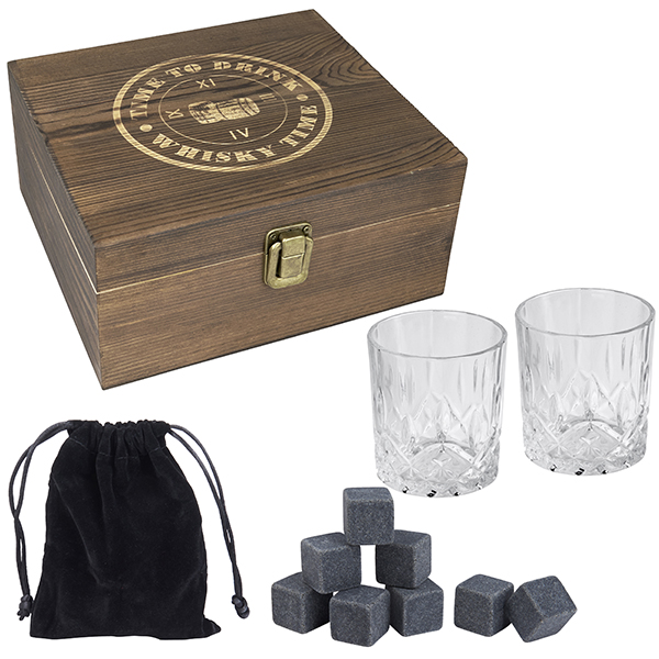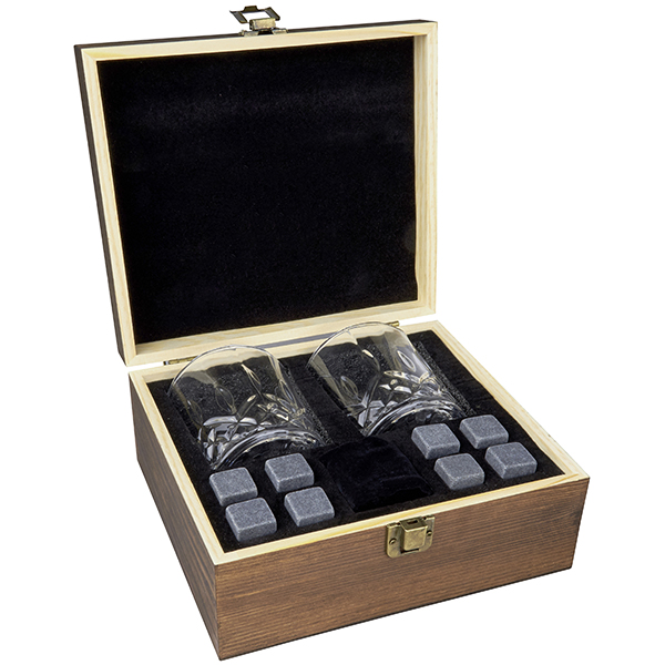 מארז מתנה וויסקי הכולל: 2 כוסות, 8 אבני קרח