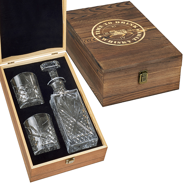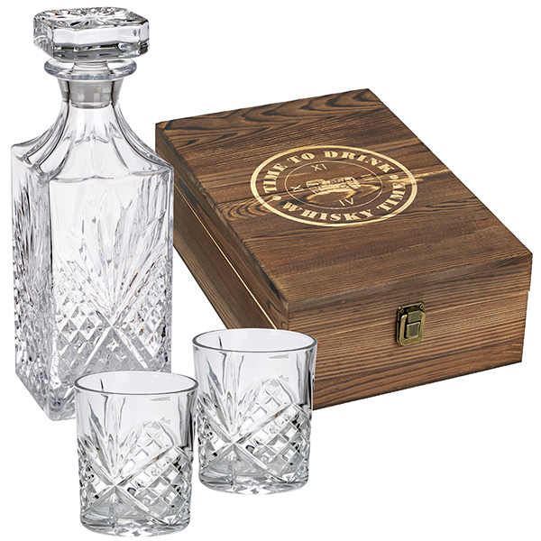 מארז מתנה וויסקי הכולל: 2 כוסות, דקנטר