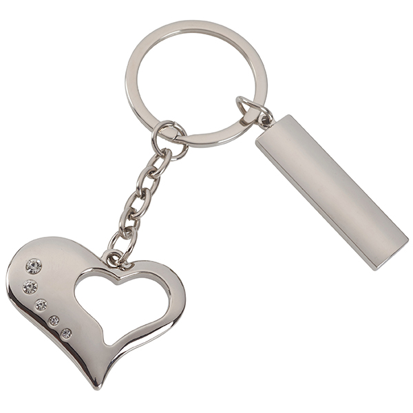 מחזיק מפתחות לב עם "חלון בצורת לב" ושורת יהלומים בצד