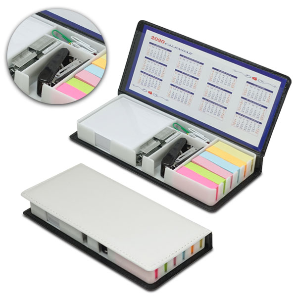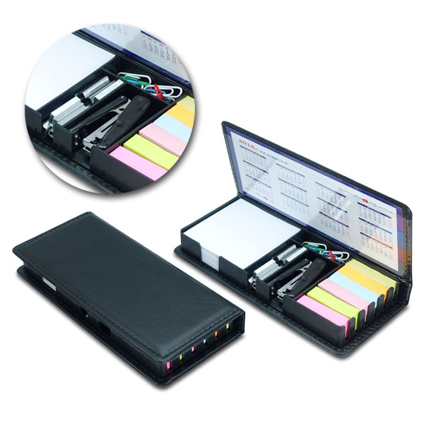 מולטיבוקס מעמד ניירות משרדי דמוי עור עם דבקיות, שדכן, סיכות לשדכן, מהדקים, דפי ממו ותאריכון מעודכן