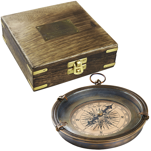 מצפן ענק מהודר בסיס נחושת בקופסת עץ