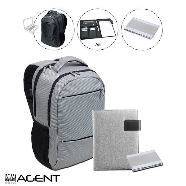 סט לסוכן הכולל:ארמדה – תיק גב מפואר ללפטופ מאריג 500D דומיין – מכתביית הייטק A5 בעיצוב חדש ניתן לשנות בהתאם לתקציב