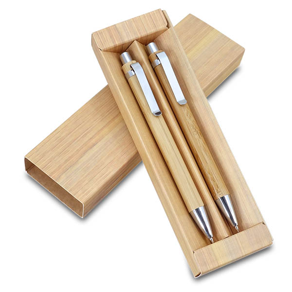 "סט במבוק" עט + עיפרון מכני עשוים עץ במבוק