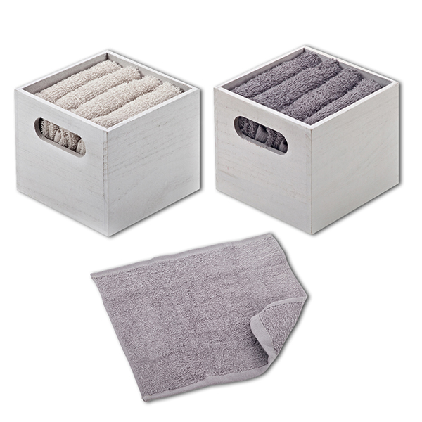 סט של 4 מגבות ידיים במארז של קופסת עץ מהודרת.
