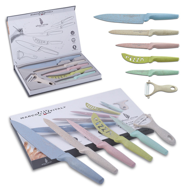 סט 6 סכינים צבעוניים עם ציפוי דמוי שיש
