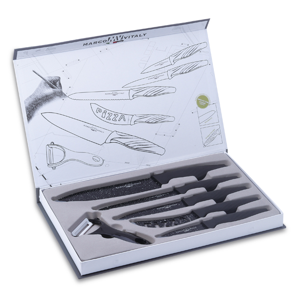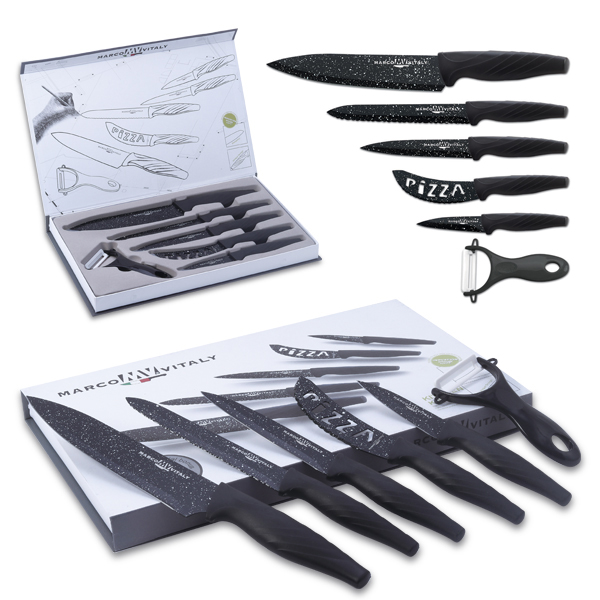 סט 6 סכינים עם ציפוי דמוי שיש במארז
