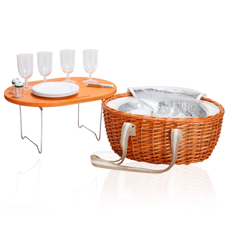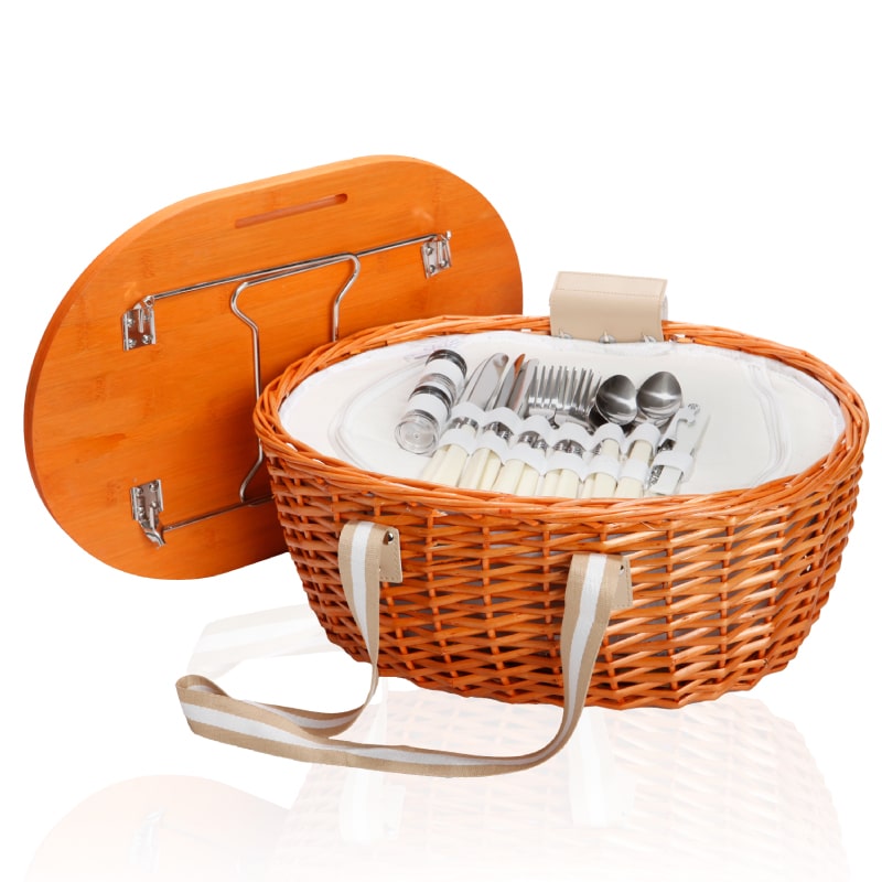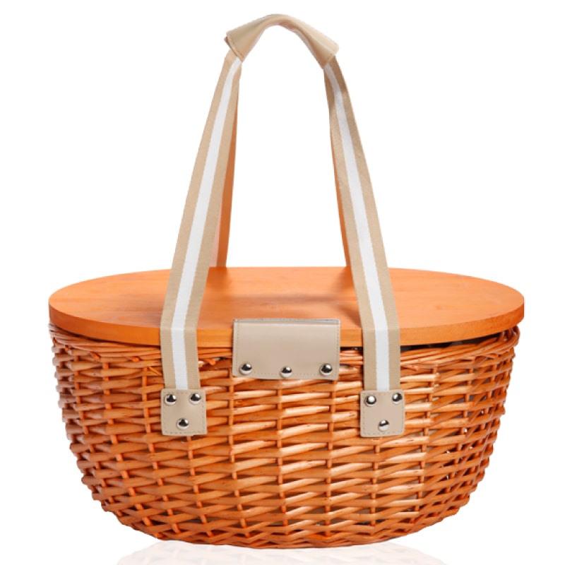 סלסלת פיקניק מהודרת עשויה מנצרים בשילוב עץ