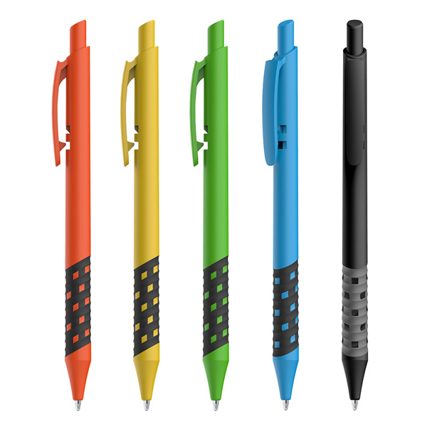 עט כדורי עם גריפ גומי משובץ – צבע מלא