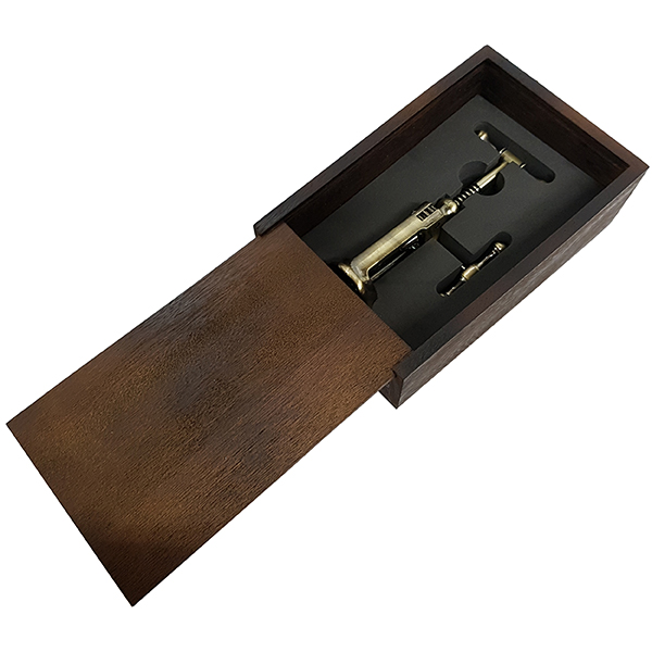 פותחן יין מעוצב רטרו מנחושת באריזת מתנה עץ
