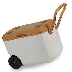 צידנית קשיחה עם גלגלי שטח וידית משיכה.