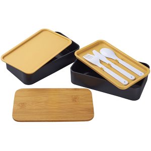 קופסא אוכל כפולה עם מכסה במבוק ומגש סכום