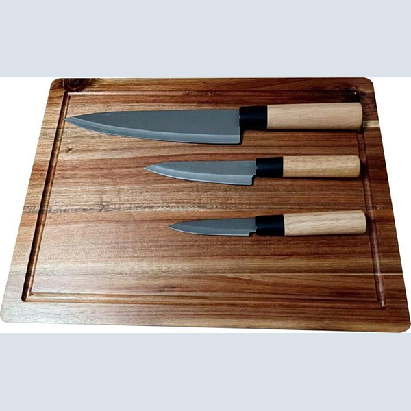 קרש חיתוך איכותי גודל 38-28-1.8 סמ , כולל 3 סכינים