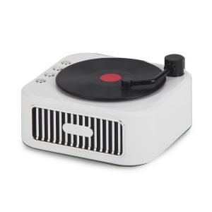 רמקול אלחוטי נייד בסגנון פטיפון רטרו.