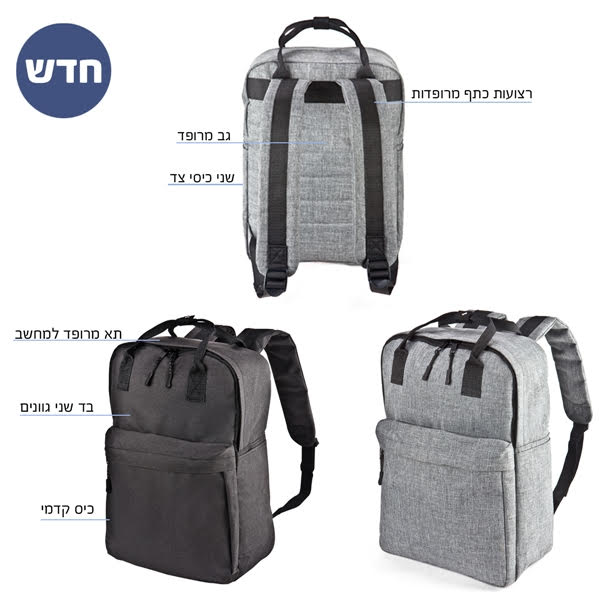 כיס קידמי עם רוכסן ,שני כיסי צד,
