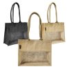 תיק מעוצב עשוי בד יוטה בשילוב PVC שקוף